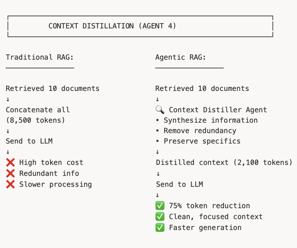 Context DistillerInformation SynthesizerCompresses and removes redundancy from retrieved documents